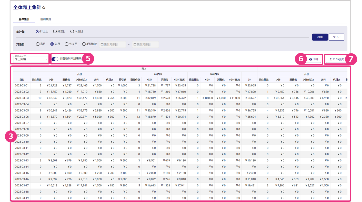 『XLSX出力』をクリックすると個別売上集計が出力されます。