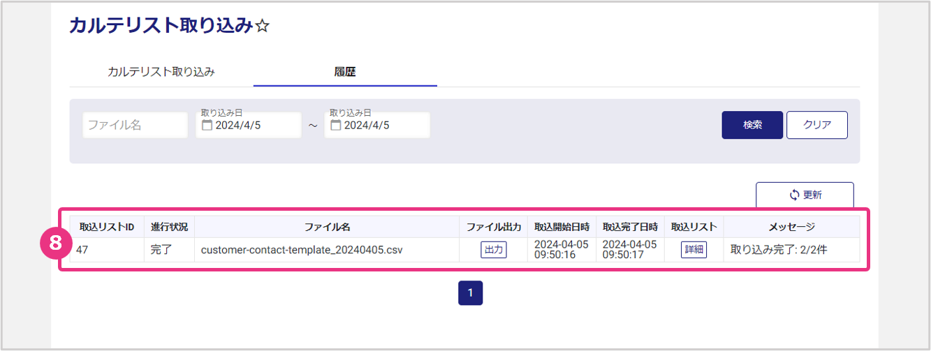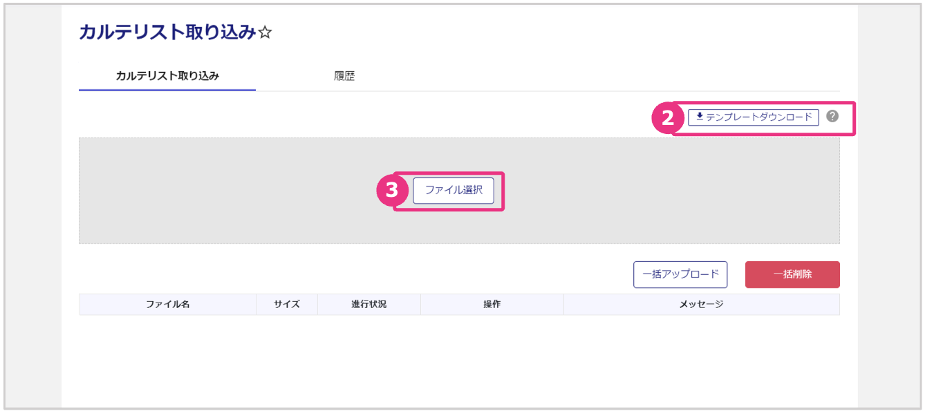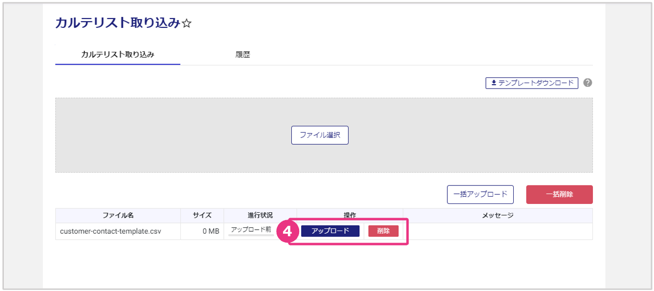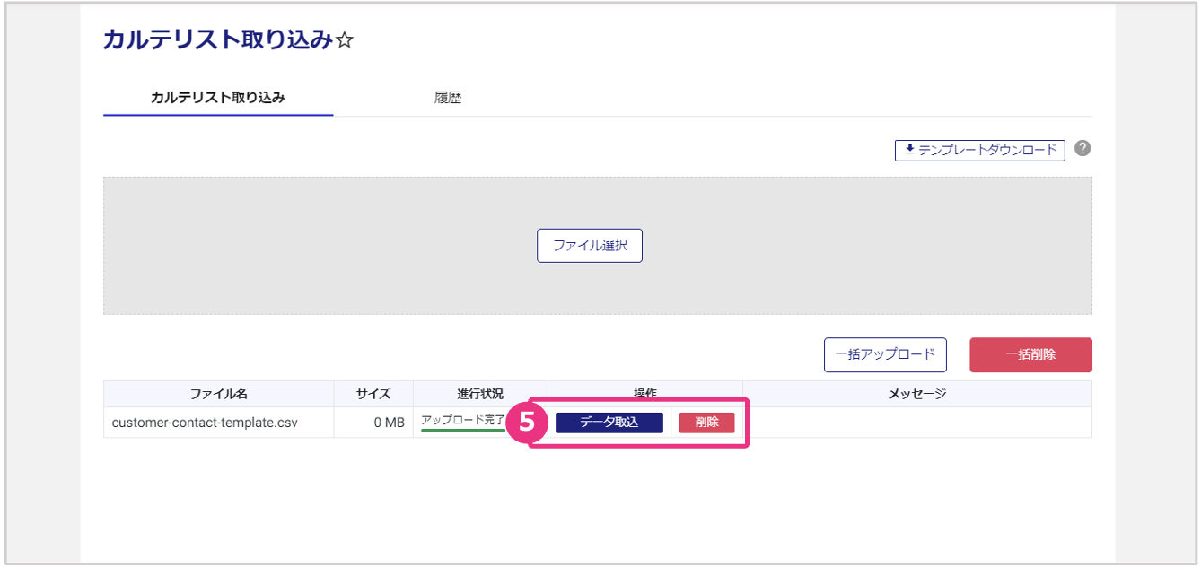 ※アップロードが完了してもカルテ情報は登録されません。必ず⑤のデータ取込まで行ってください。