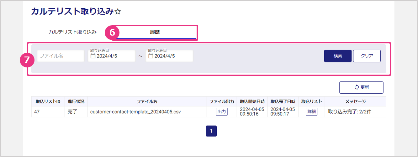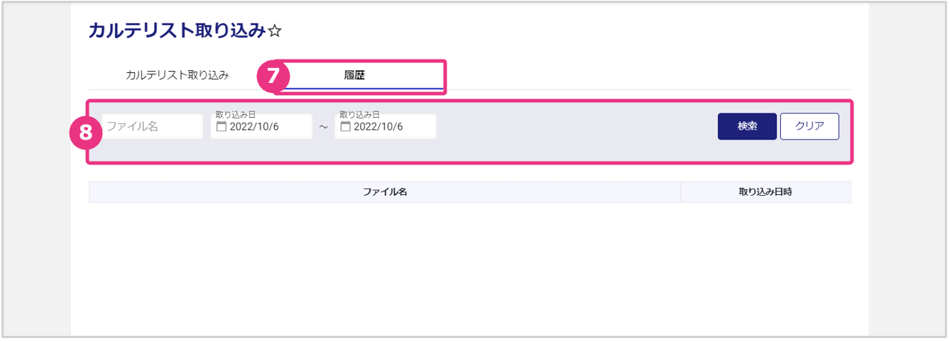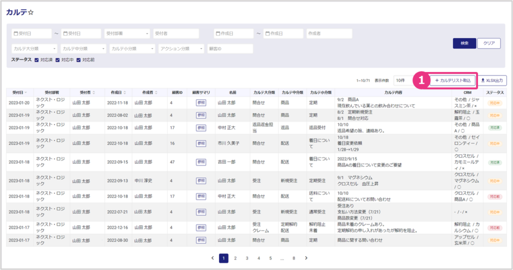 登録済みカルテの検索や、カルテリストの一括取込が可能です。