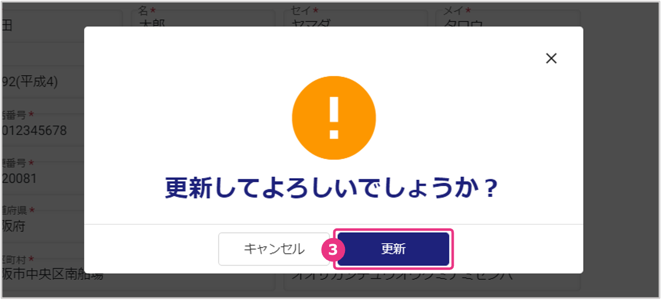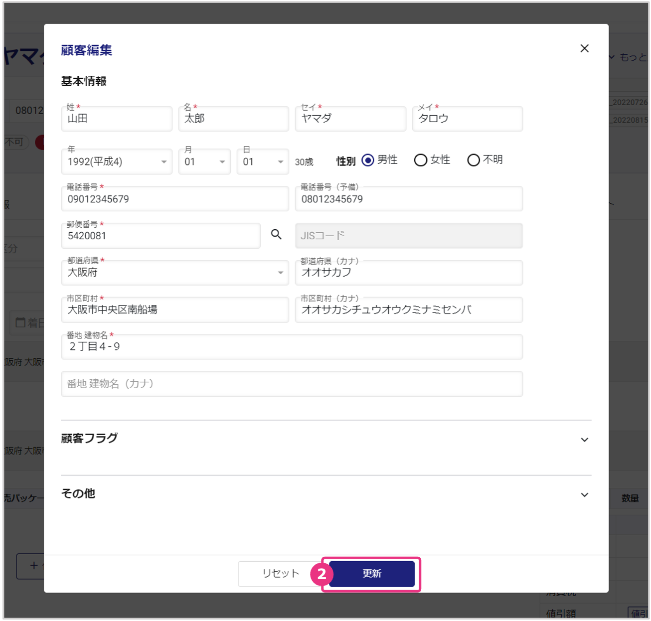 更新完了画面が表示され、顧客情報の更新内容が登録されます。