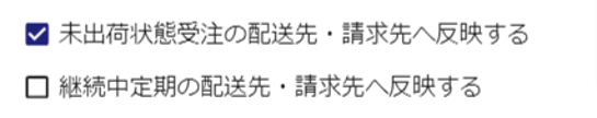未出荷状態の受注に対し、新しい住所を配送先・請求先に変更したい場合はチェックを入れてください。
