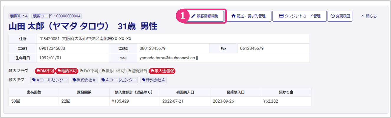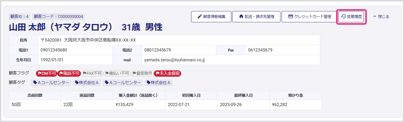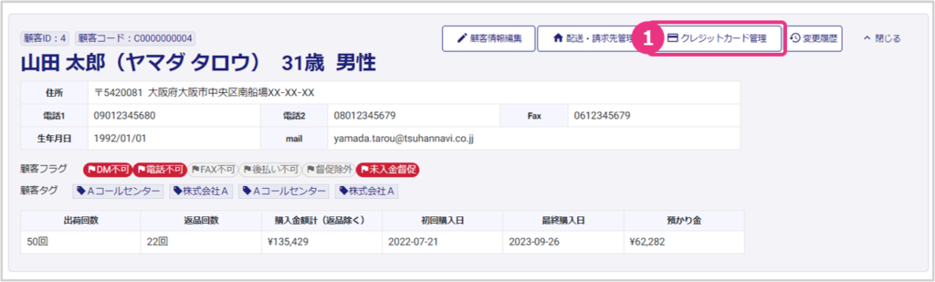 顧客>顧客の検索結果から『参照』をクリックすると、顧客サマリが開きます。