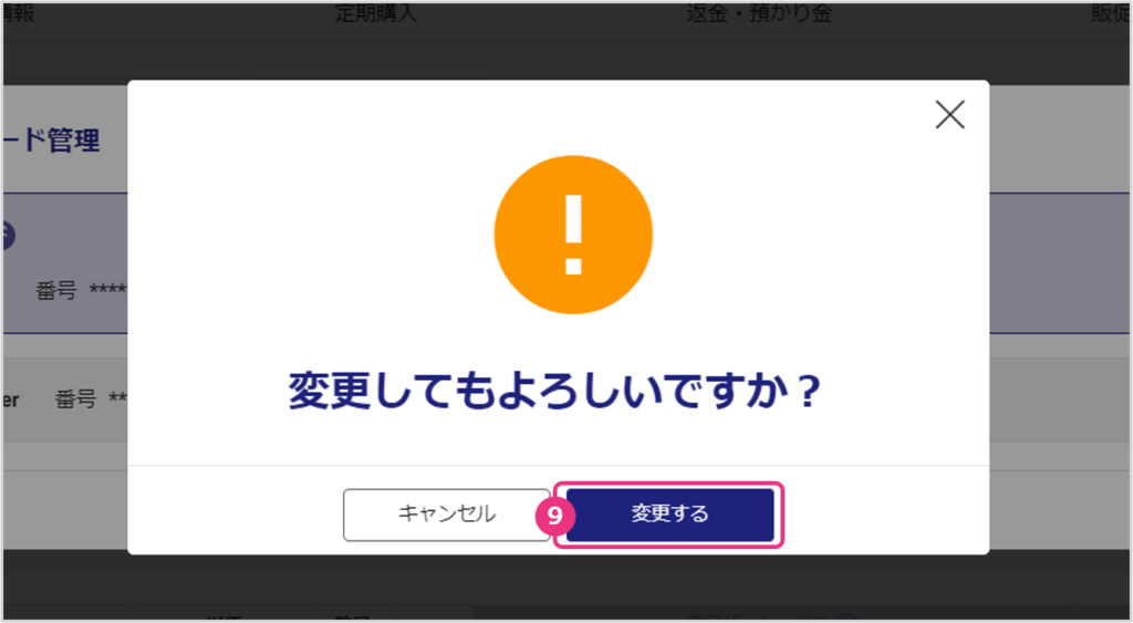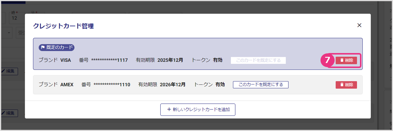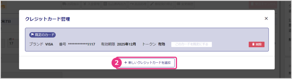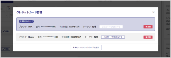 ※規定のカードは直近の受注で利用されたカード情報に更新されますのでご注意ください。