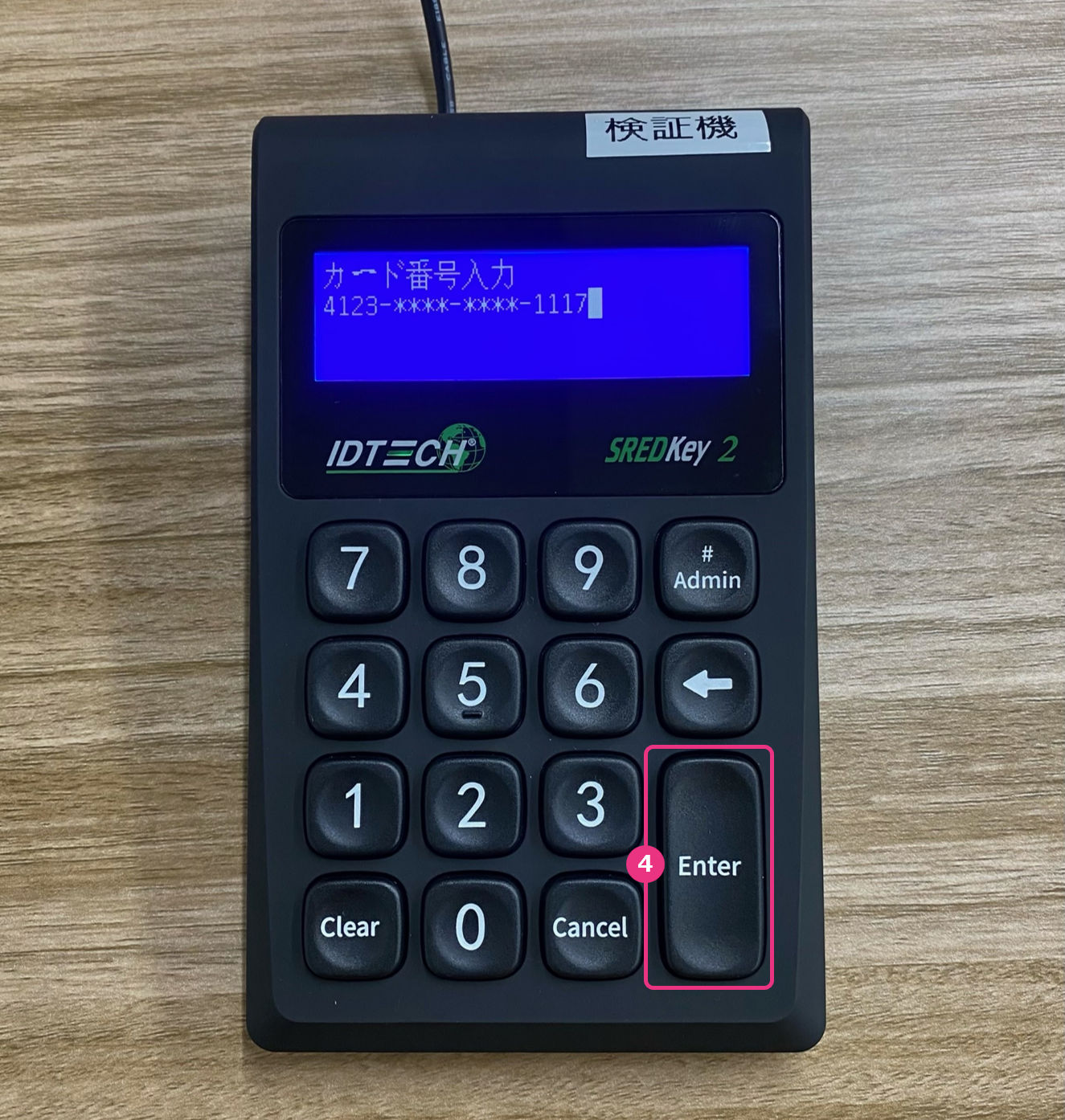 ※【Enter】キーを押下すると、再度テンキーパッドに「カード番号入力」と表示されますが、入力は不要です。