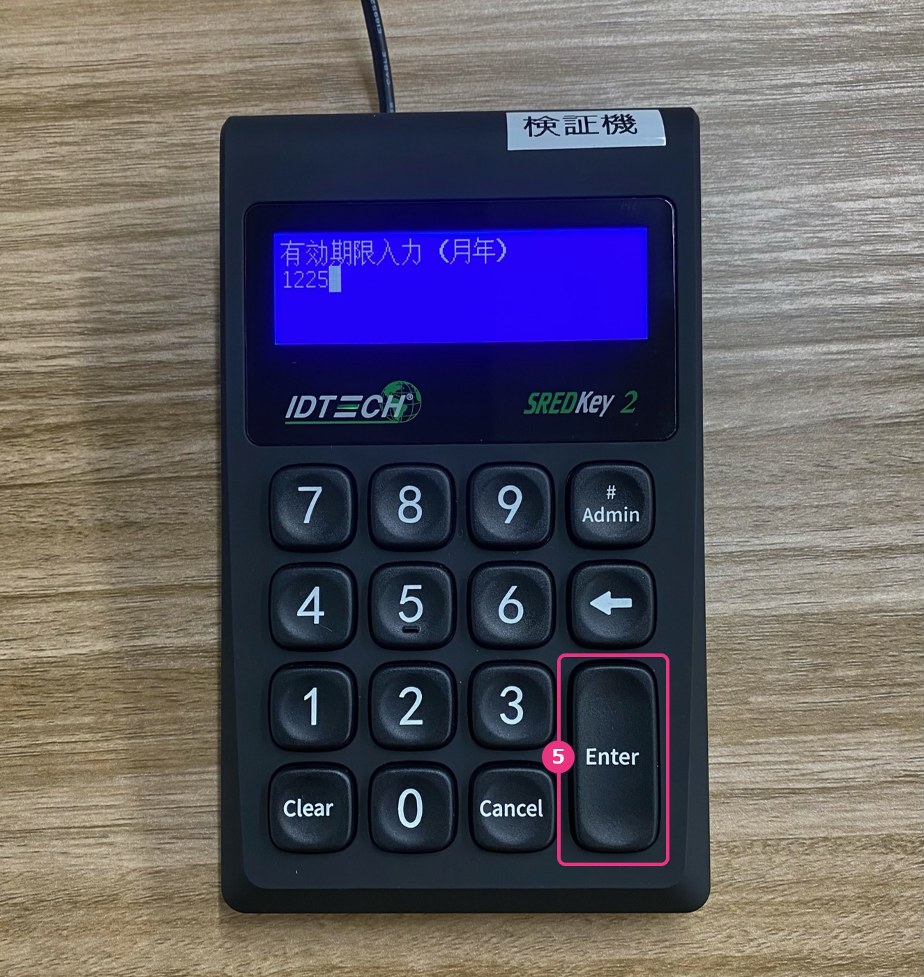 続けて、テンキーパッドに「有効期限入力(月年)」と表示されたらテンキーパッドで有効期限を入力し、【Enter】キーを押します。