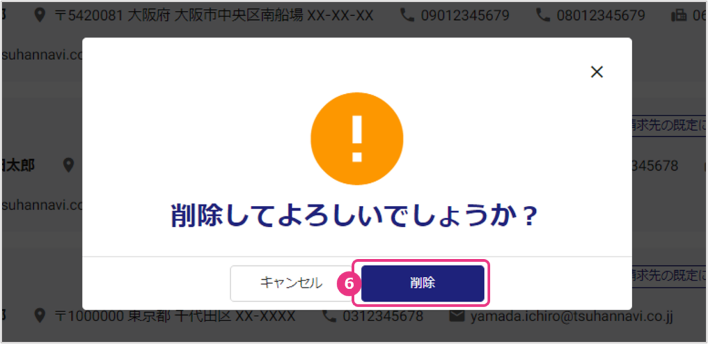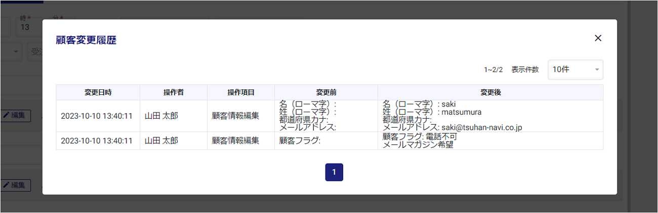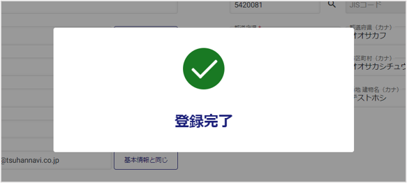 更新完了画面が表示され、顧客情報の更新内容が登録されます。