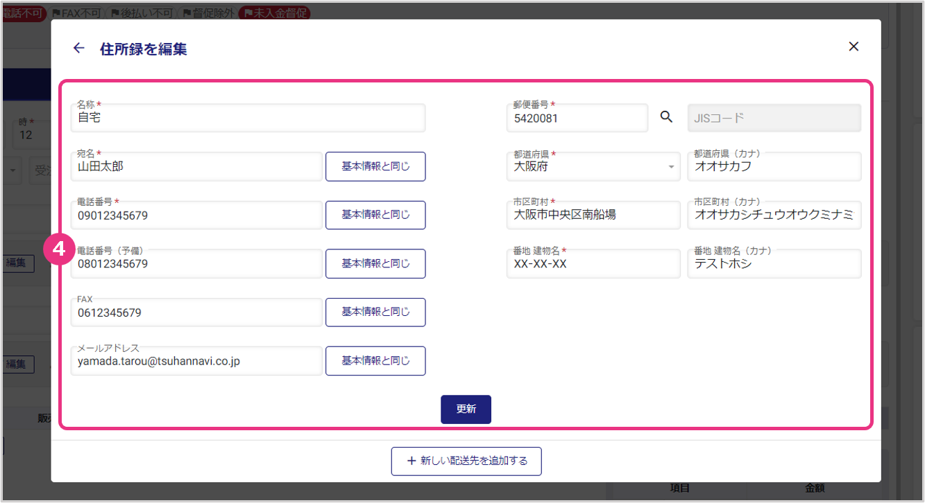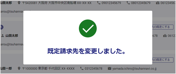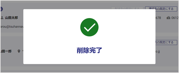 「更新完了」と表示され、配送先・請求先が更新されます。