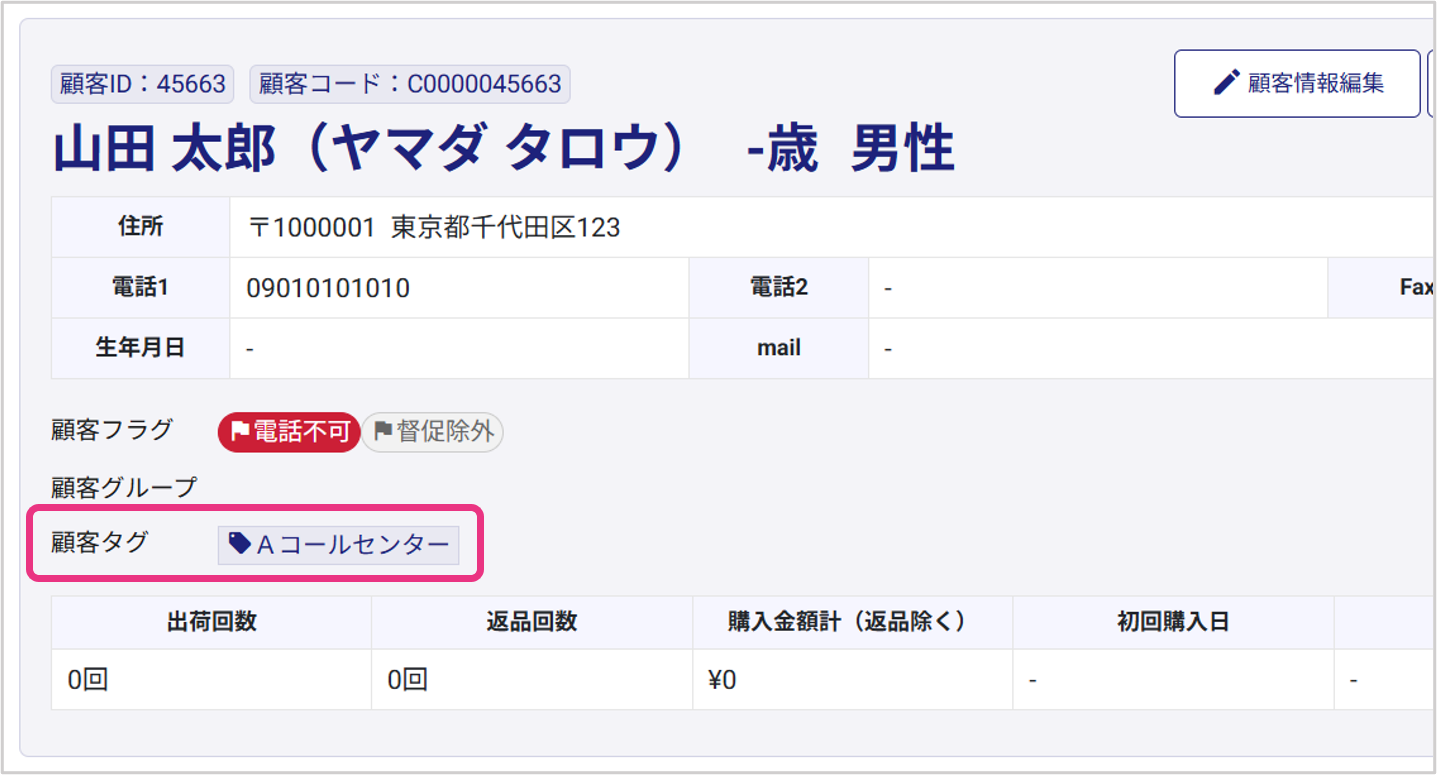 顧客タグ(顧客タグキー・顧客タグ値)の非表示設定が可能です。