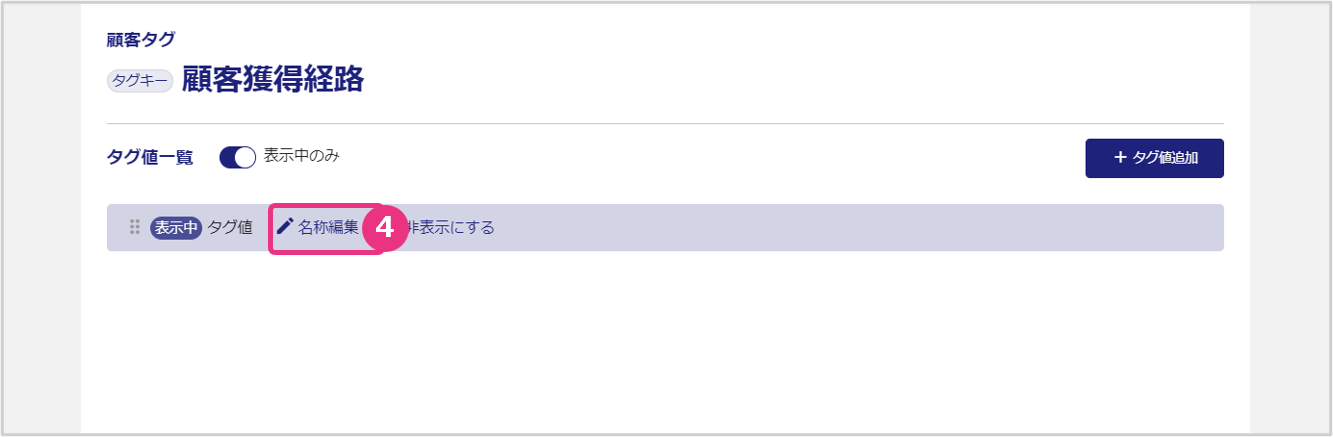 顧客タグ(顧客タグキー・顧客タグ値)の名称変更が可能です。