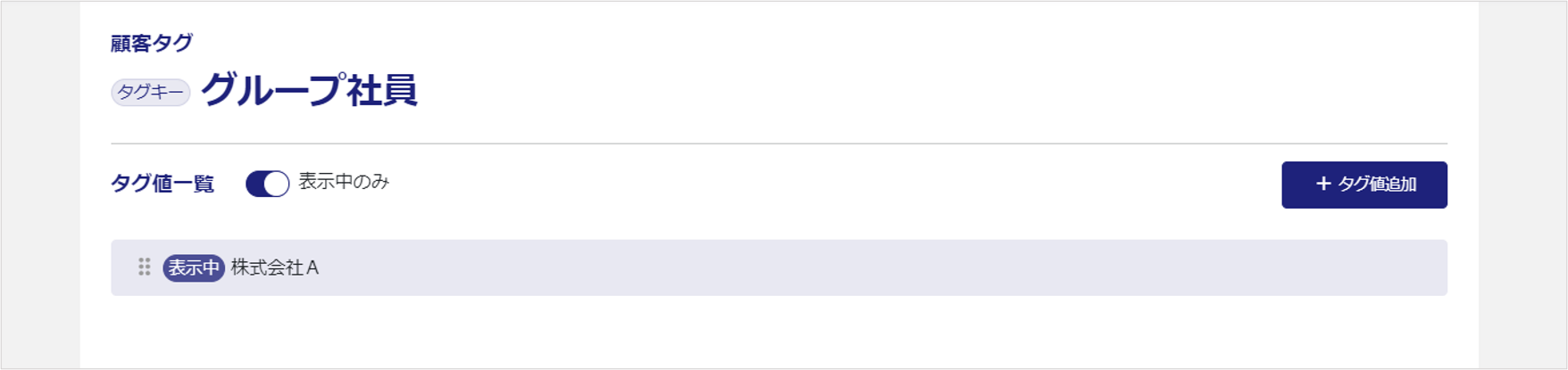 ※顧客タグキーを非表示にすると、それに紐づく顧客タグ値もすべて非表示になります。