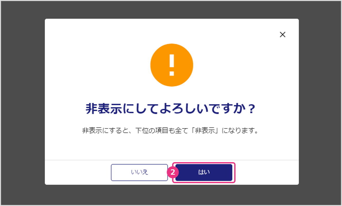 「非表示にしてよろしいですか?」と表示されたら『はい』をクリックします。