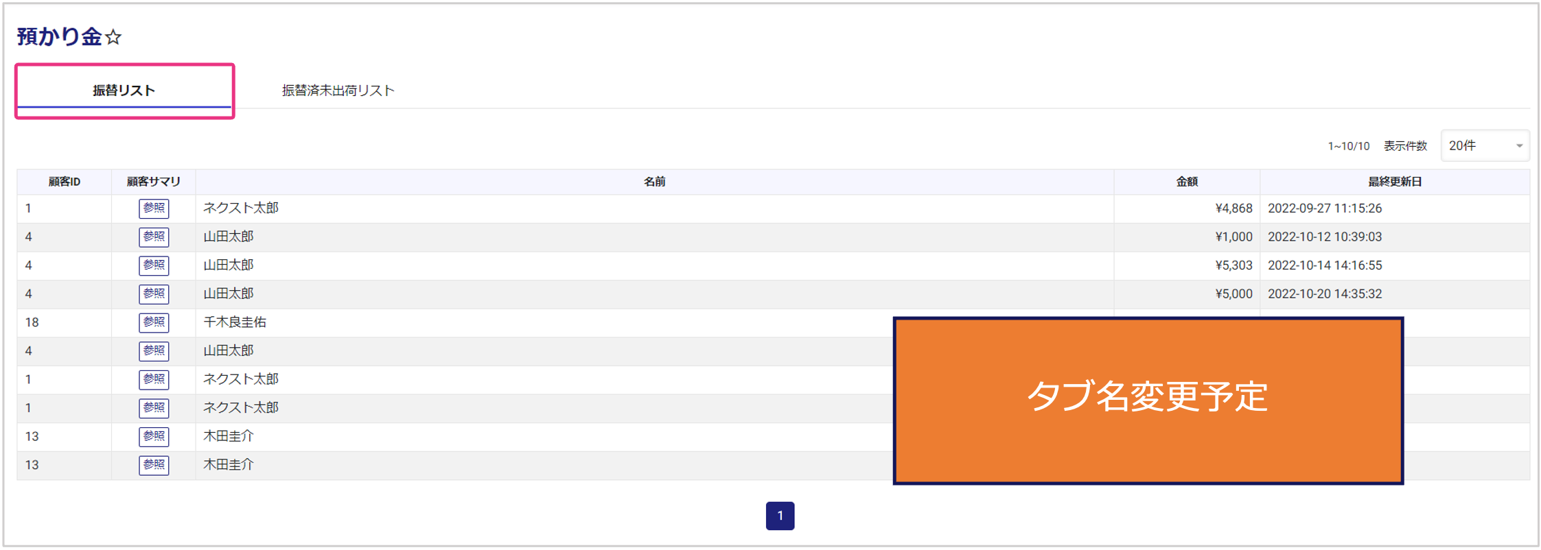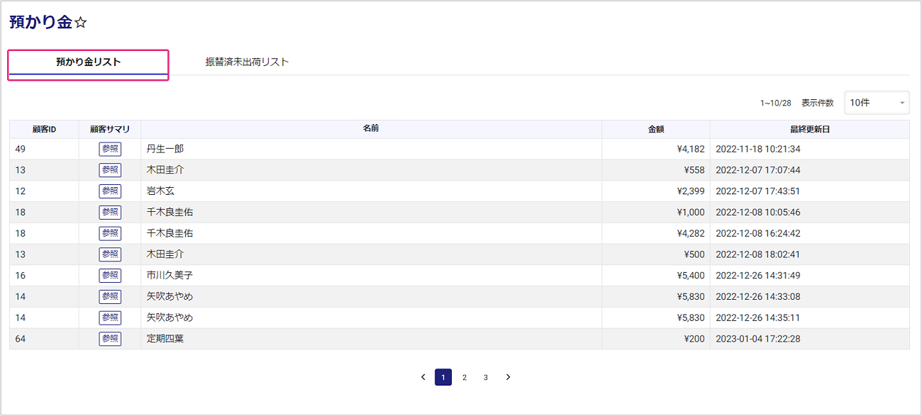 「預かり金リスト」タブをクリックすると、預かり金の一覧が表示されます。