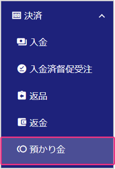 預かり金リストの確認や、預かり金から入金された受注のうち未出荷の受注リストの確認が可能です。