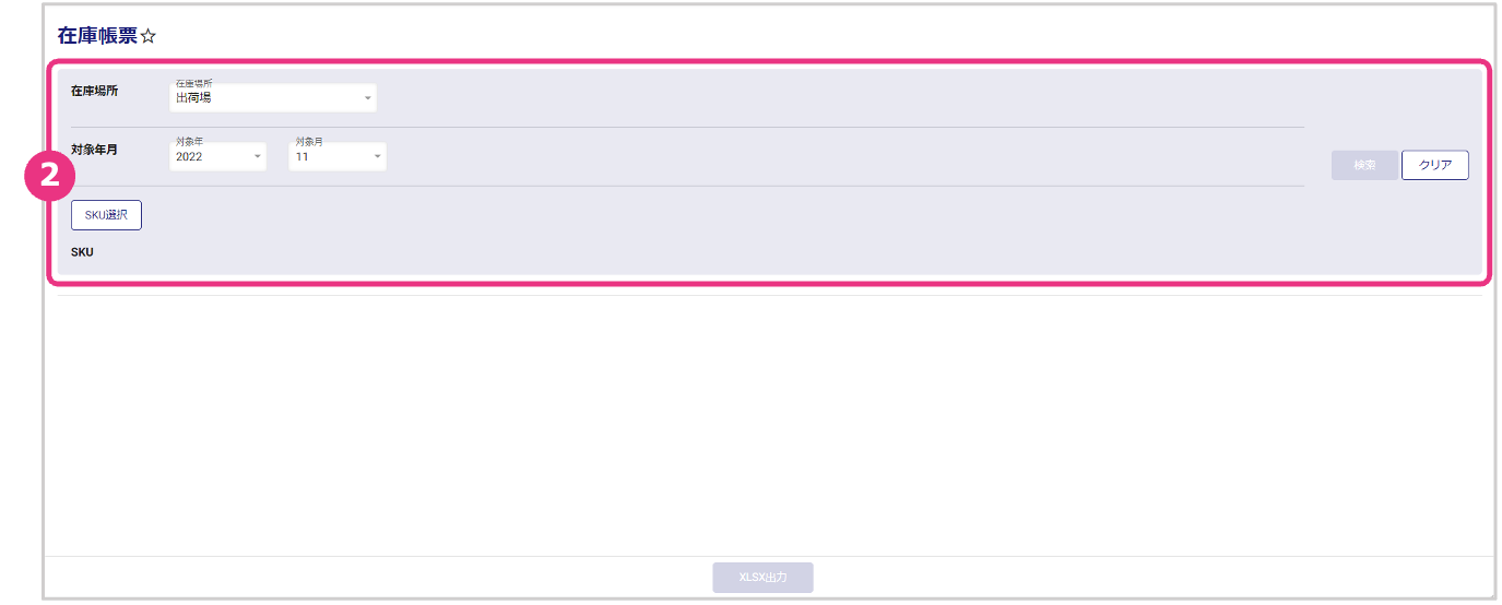 | 対象年月 | 在庫を確認したい年月を選択します。 |