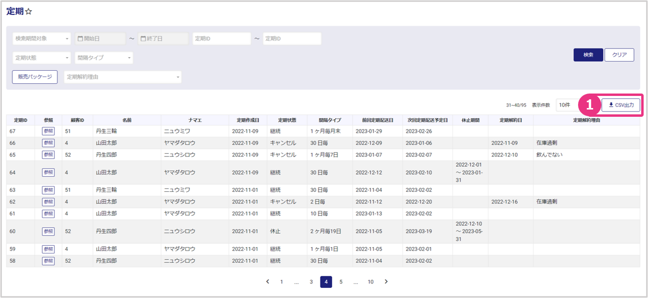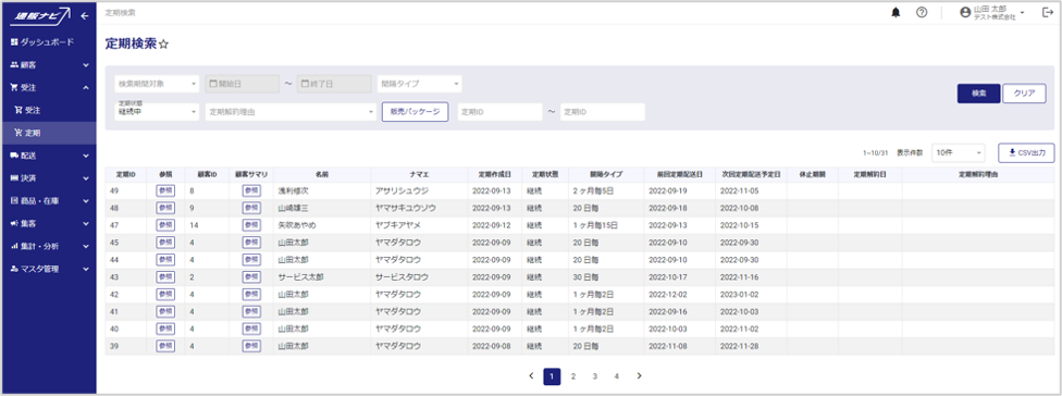 定期情報のCSV出力が可能です。