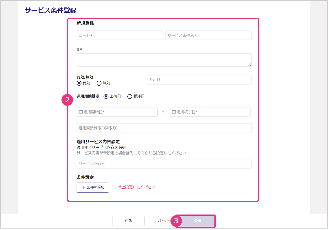 | サービス条件名* | サービス条件名を入力します。 |